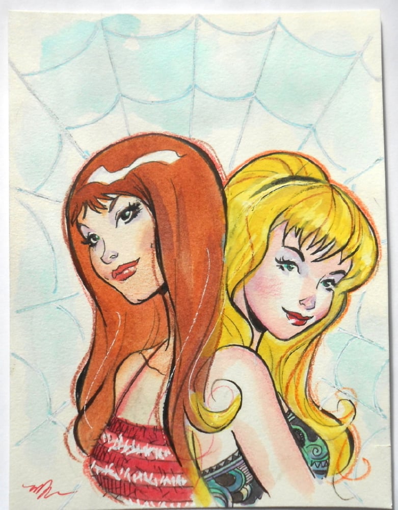 Gwen and MJ original watercolor painting. Measures @ 8"x6"